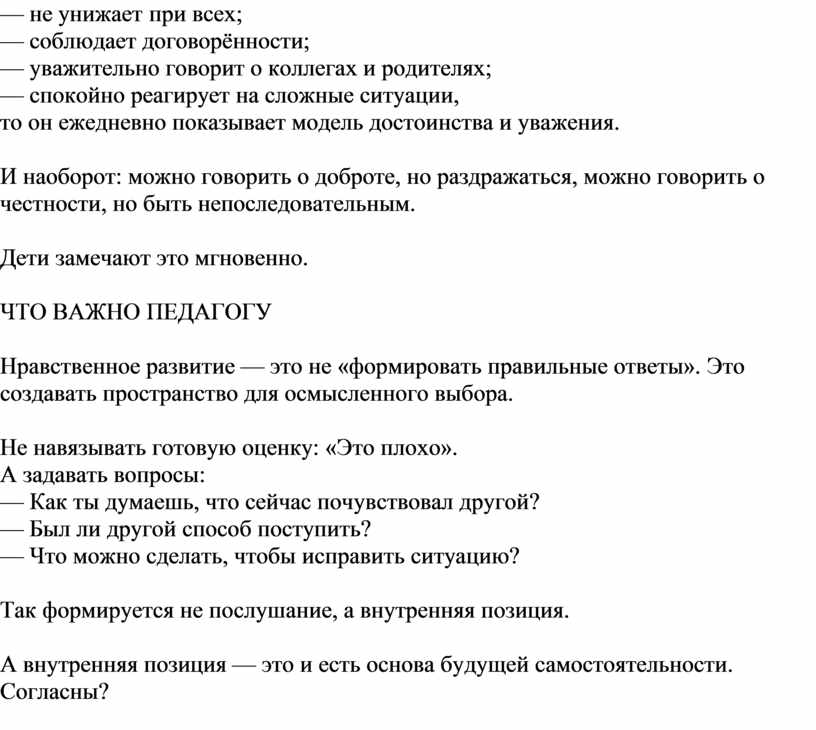 Нравственное развитие — это не «формировать правильные ответы». Это создавать пространство для осмысленного выбора.
