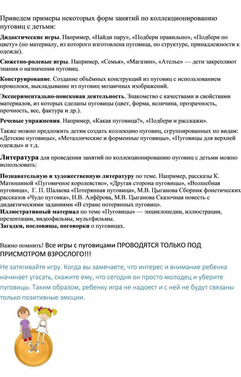 Приведем примеры некоторых форм занятий по коллекционированию пуговиц с детьми: