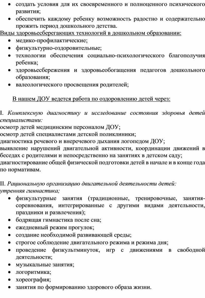 Виды здоровьесберегающих технологий в дошкольном образовании: