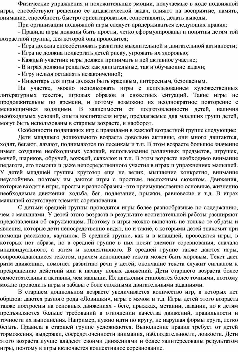 Физические упражнения и положительные эмоции, получаемые в ходе подвижной игры, способствуют решению ее дидактической задач, влияют на восприятие, память, внимание, способность быстро ориентироваться, сопоставлять, делать выводы.