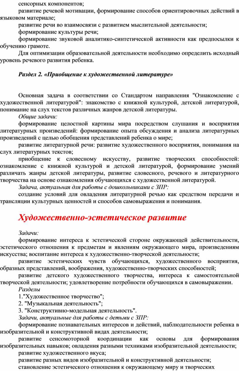 приобщение к словесному искусству, развитие творческих способностей: ознакомление с книжной культурой и детской литературой, формирование умений различать жанры детской литературы, развитие словесного, речевого и литературного творчества на основе ознакомления обучающихся с художественной литературой.