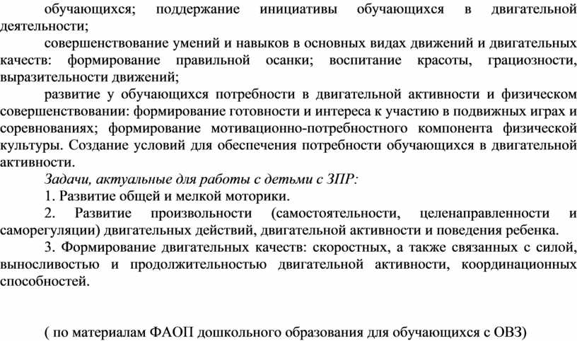 ( по материалам ФАОП дошкольного образования для обучающихся с ОВЗ)