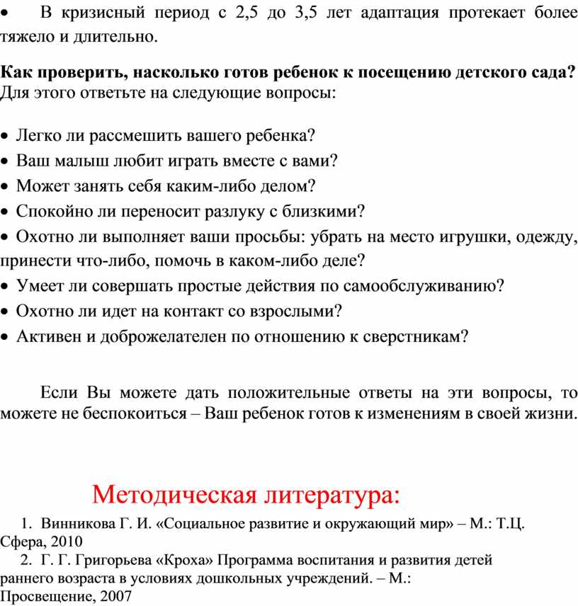 · В кризисный период с 2,5 до 3,5 лет адаптация протекает более тяжело и длительно.