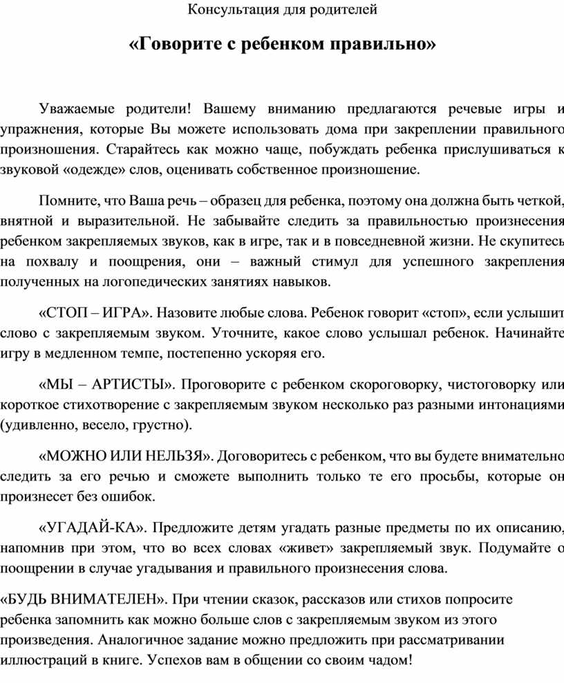Консультация для родителей