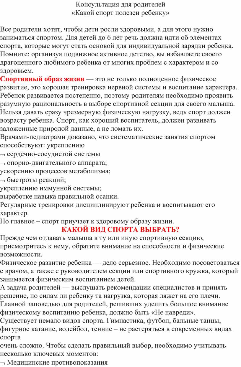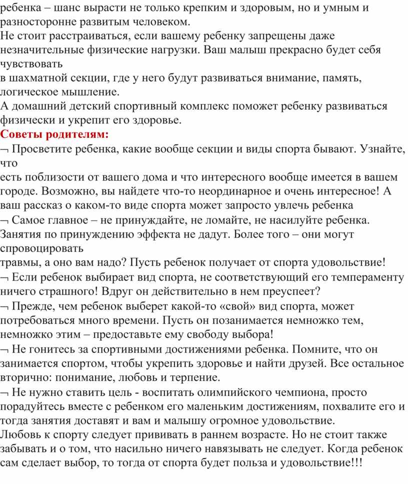 Ø Прежде, чем ребенок выберет какой-то «свой» вид спорта, может