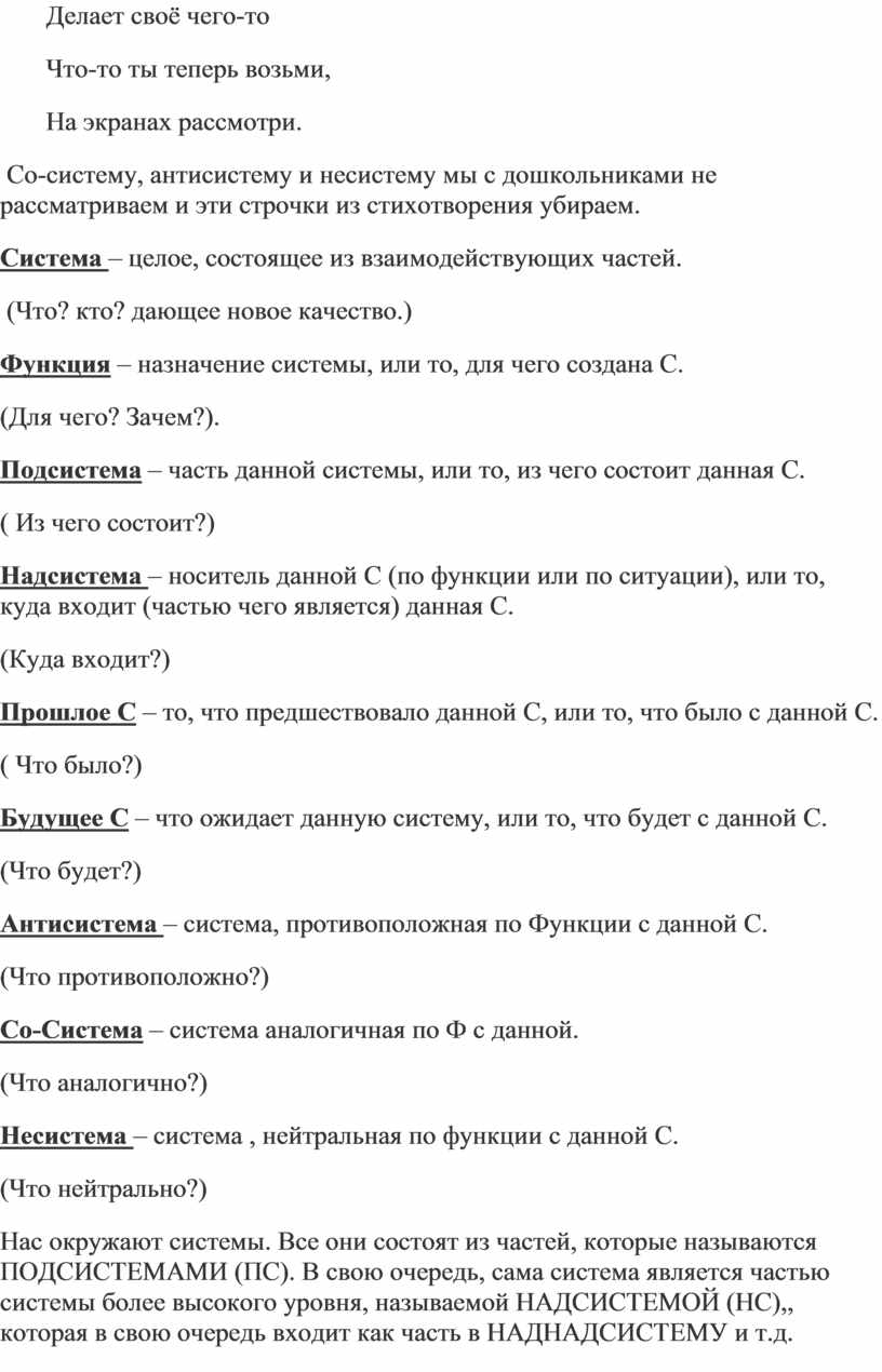 Со-систему, антисистему и несистему мы с дошкольниками не рассматриваем и эти строчки из стихотворения убираем.