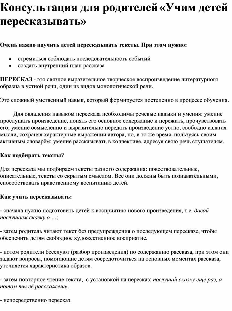 важно научить детей пересказывать тексты. При этом нужно: