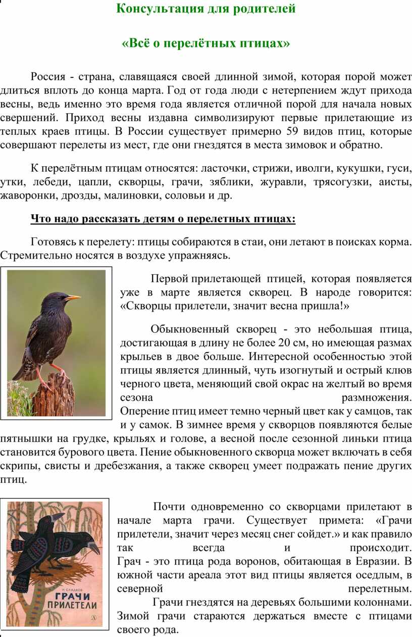 - по возможности во время прогулок с детьми понаблюдать за жизнью птиц весной, за их поведением, научить ребенка узнавать грача и скворца, находить общие и отличительные признаки этих птиц;