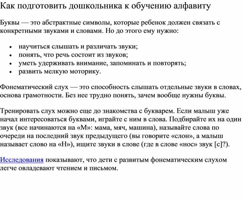 Буквы — это абстрактные символы, которые ребенок должен связать с конкретными звуками и словами. Но до этого ему нужно: