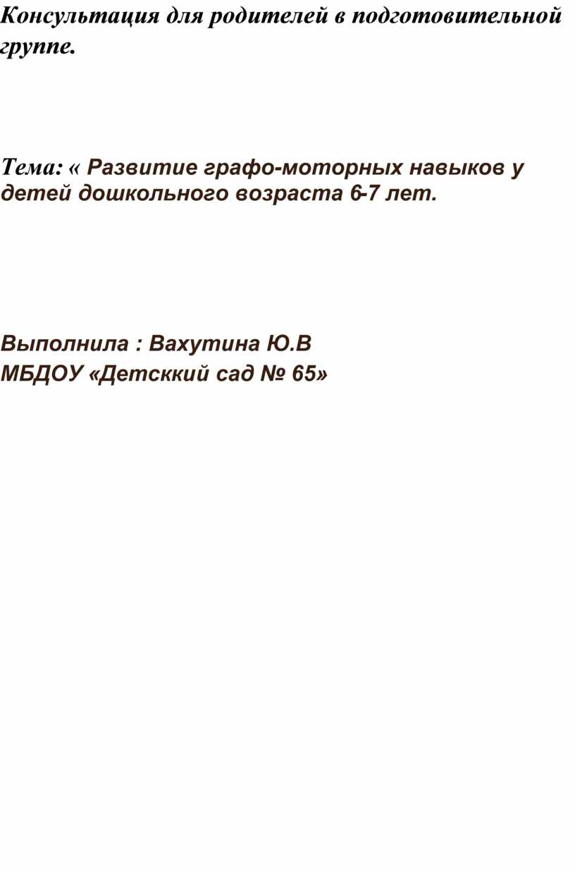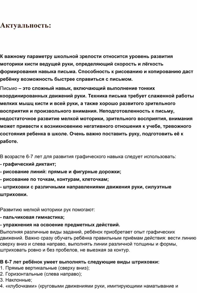 графо-моторных навыков у детей дошкольного возраста 6-7 лет.