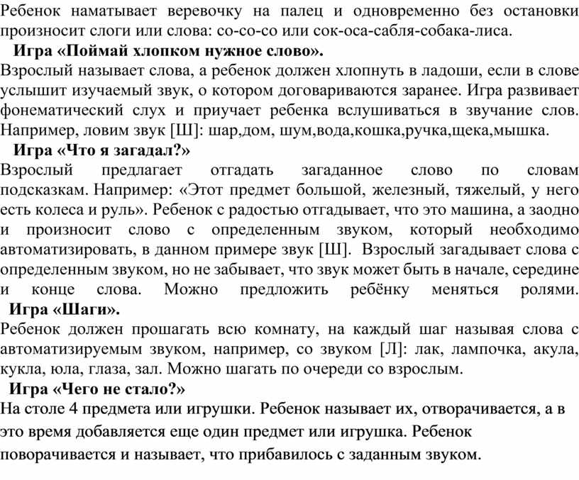 данном примере звук [Ш]. Взрослый загадывает слова с определенным звуком, но