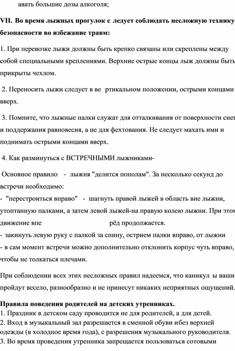 VII. Во время лыжных прогулок следует соблюдать несложную технику безопасности во избежание травм: