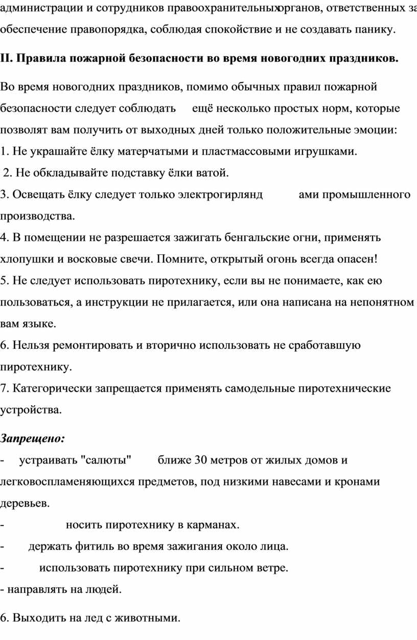 I. Правила поведения в общественных местах во время проведения Новогодних Ёлок и в других местах массового скопления людей.