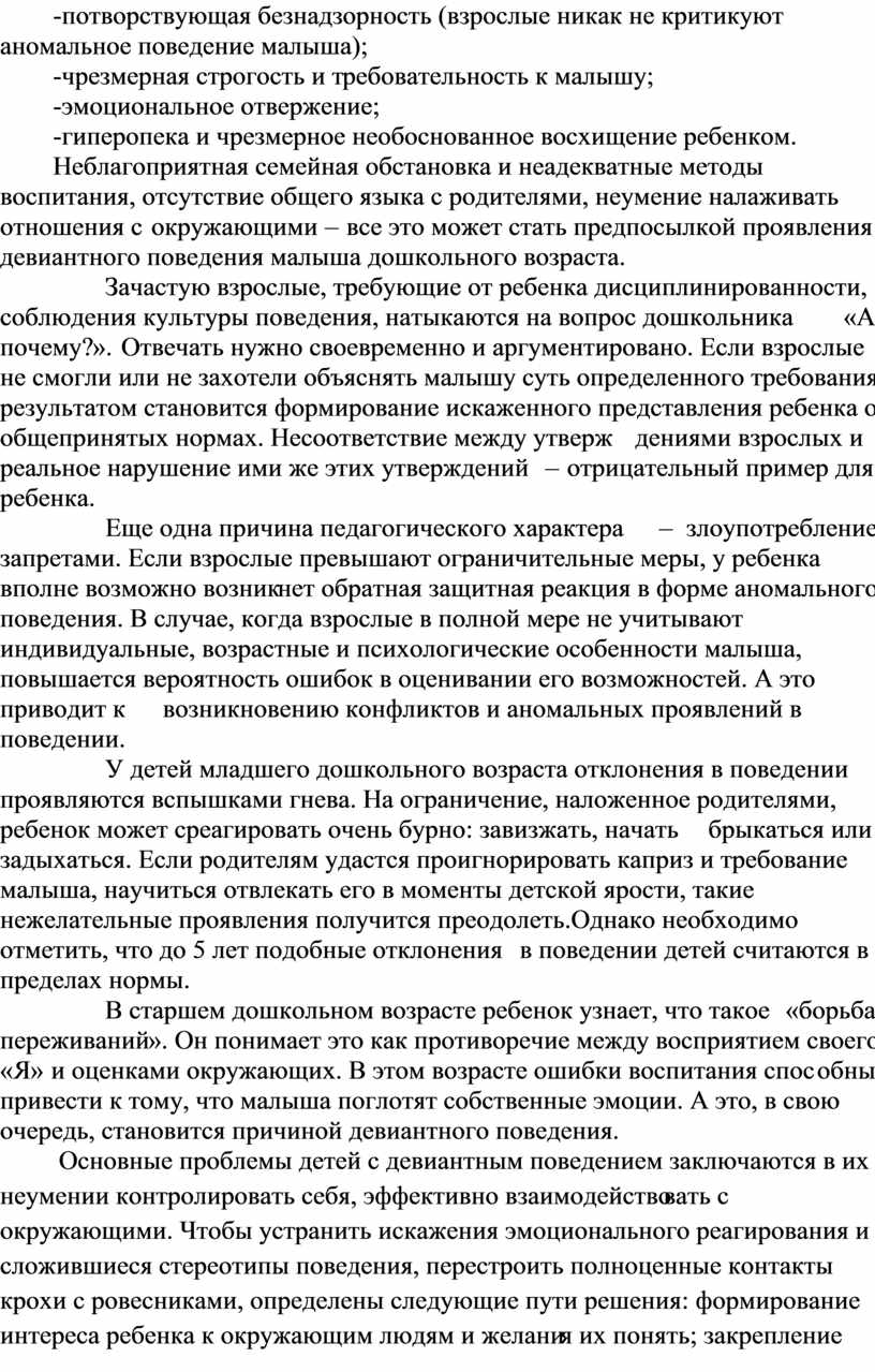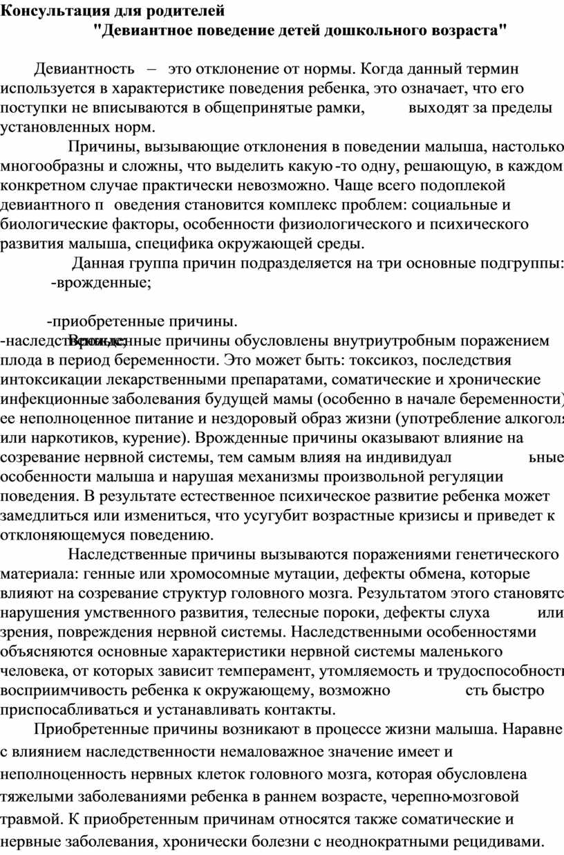 "Девиантное поведение детей дошкольного возраста"