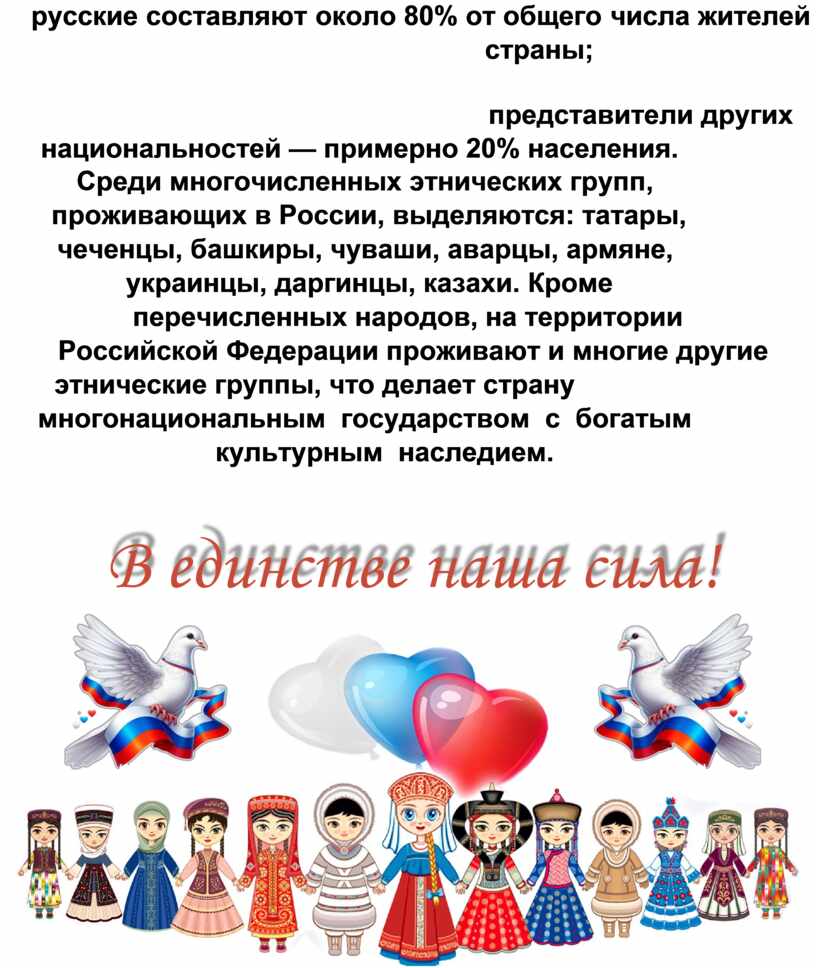 Национальный состав населения России характеризуется следующим соотношением: