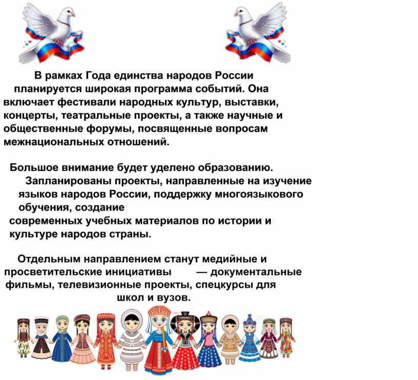 В рамках Года единства народов России планируется широкая программа событий. Она