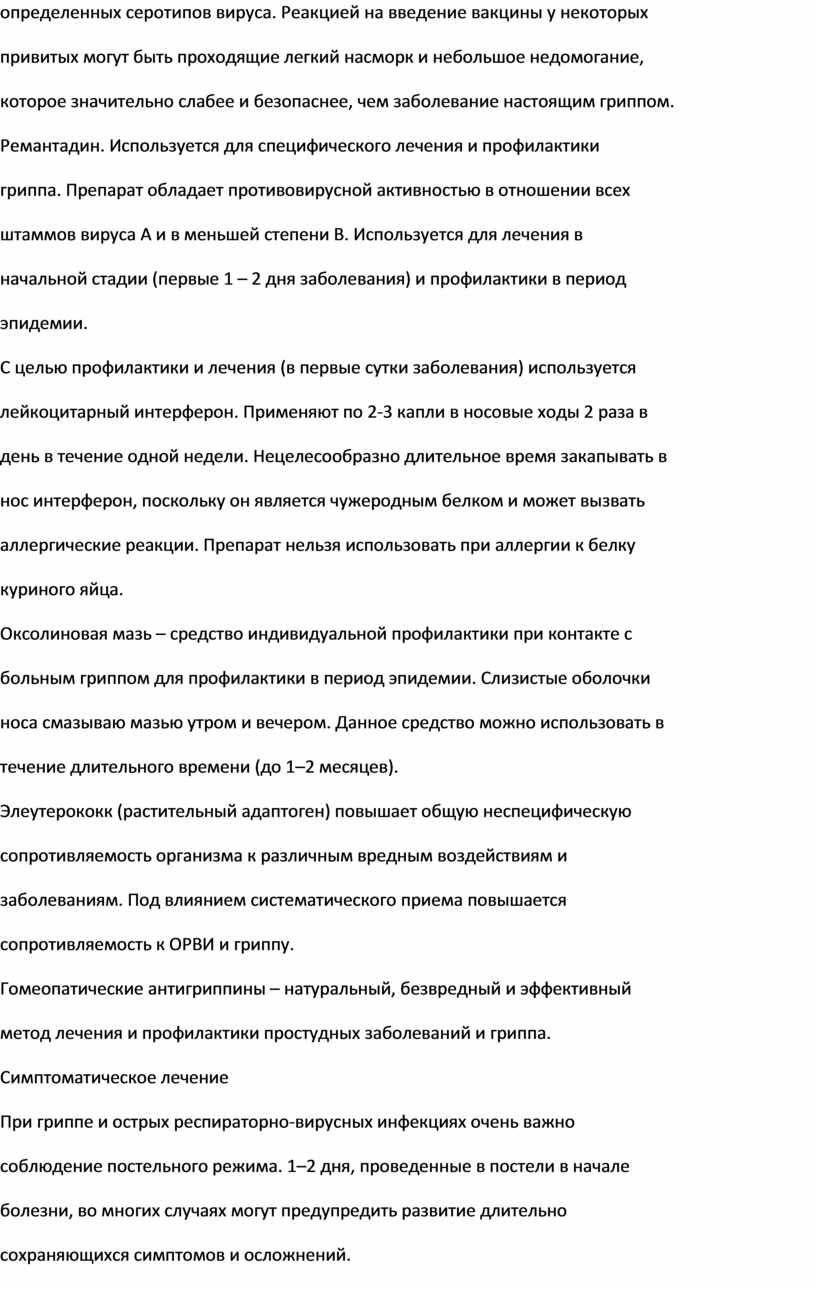 начальной стадии (первые 1 – 2 дня заболевания) и профилактики в период