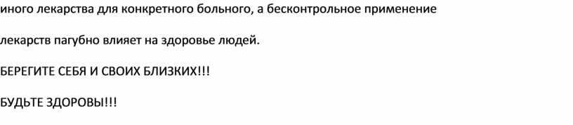 иного лекарства для конкретного больного, а бесконтрольное применение