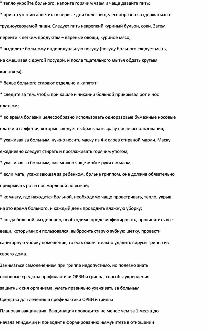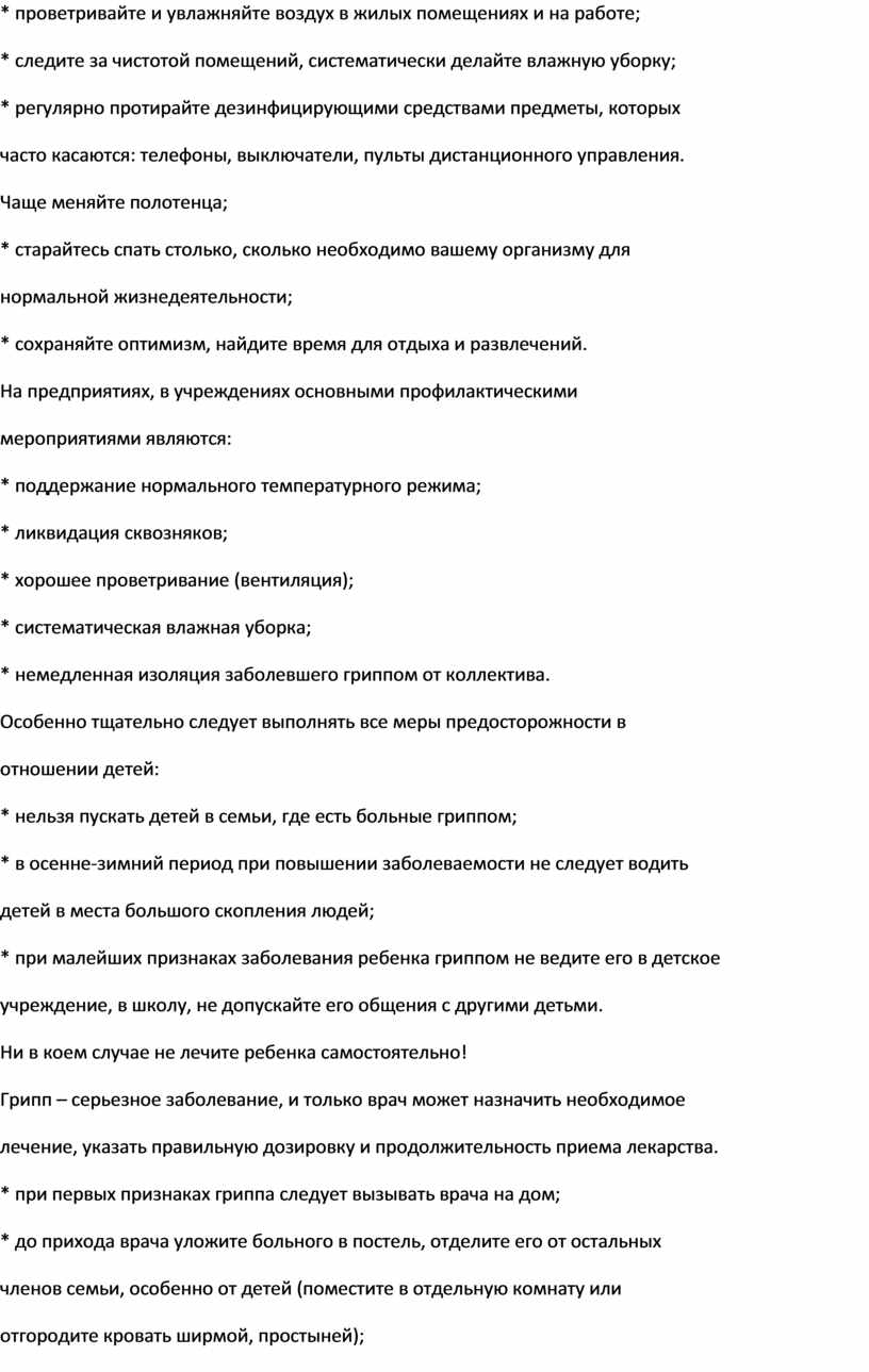 * немедленная изоляция заболевшего гриппом от коллектива.