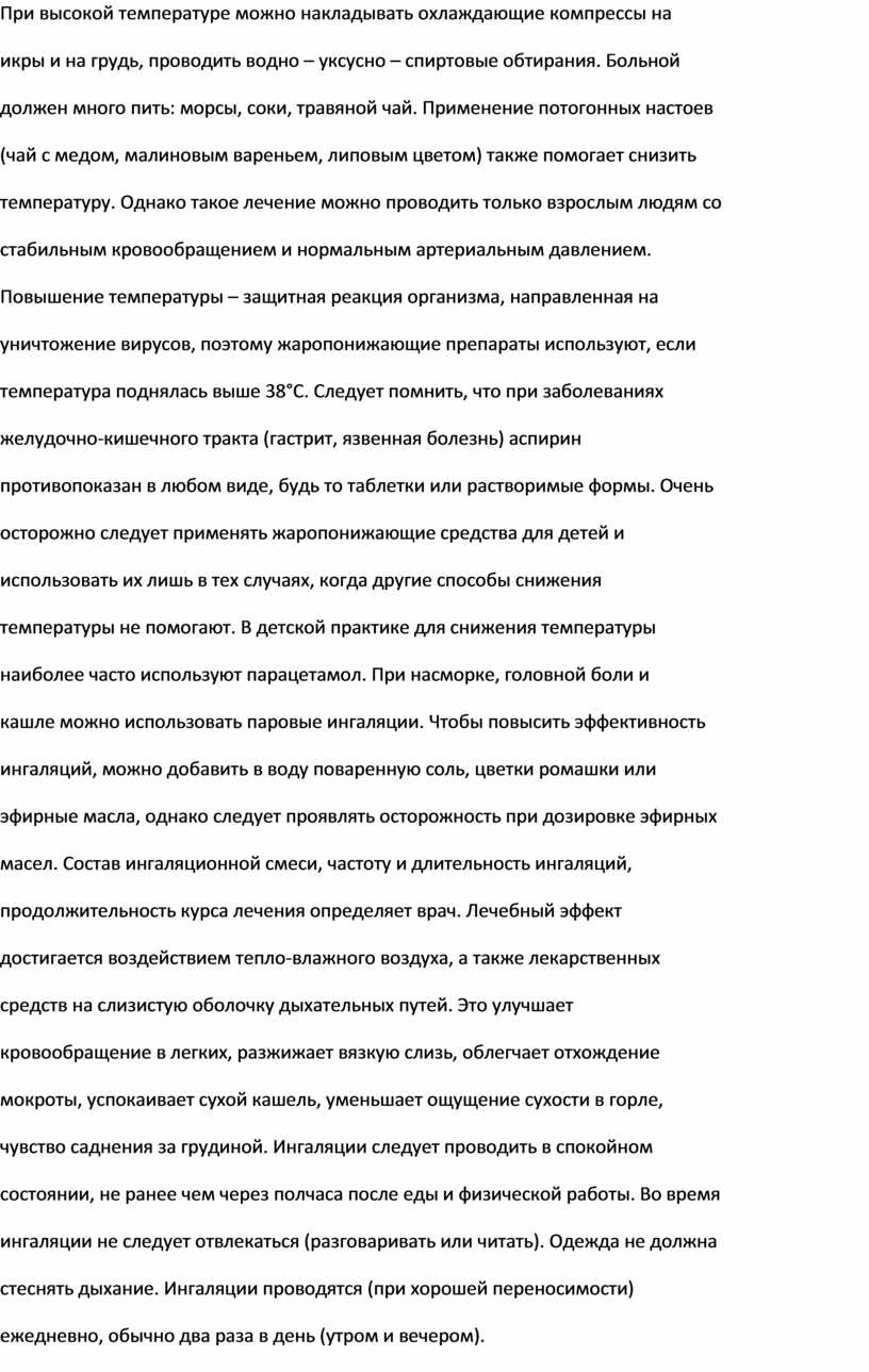 уничтожение вирусов, поэтому жаропонижающие препараты используют, если
