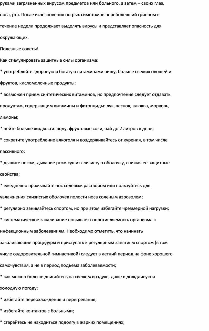 носа, рта. После исчезновения острых симптомов переболевший гриппом в