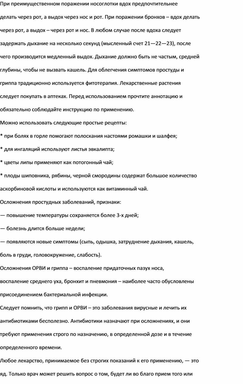 Заниматься самолечением при гриппе недопустимо, но полезно знать