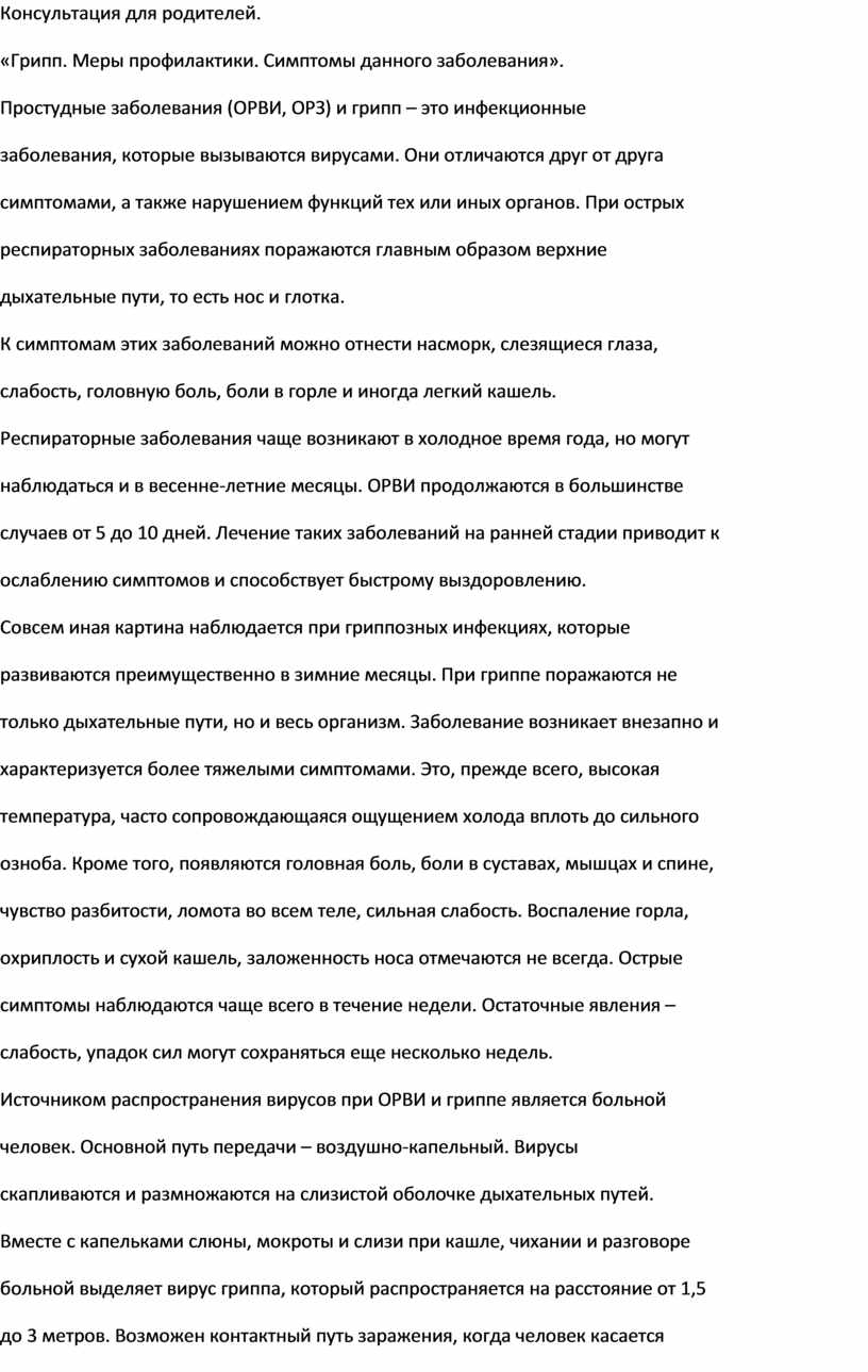 «Грипп. Меры профилактики. Симптомы данного заболевания».