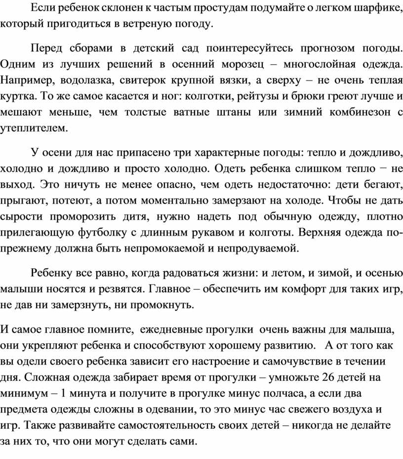 Осенняя погода очень переменчива, поэтому тщательно готовьтесь к походу в детский сад: продумывайте, как одеть ребенка и что взять с собой.