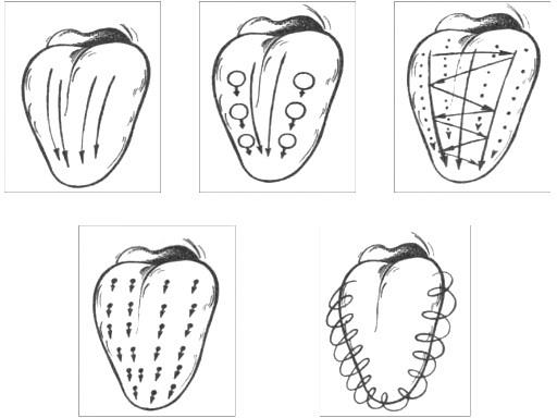 Во всех разновидностях логомассажа применяют такие же движения, что и в классическом массаже: