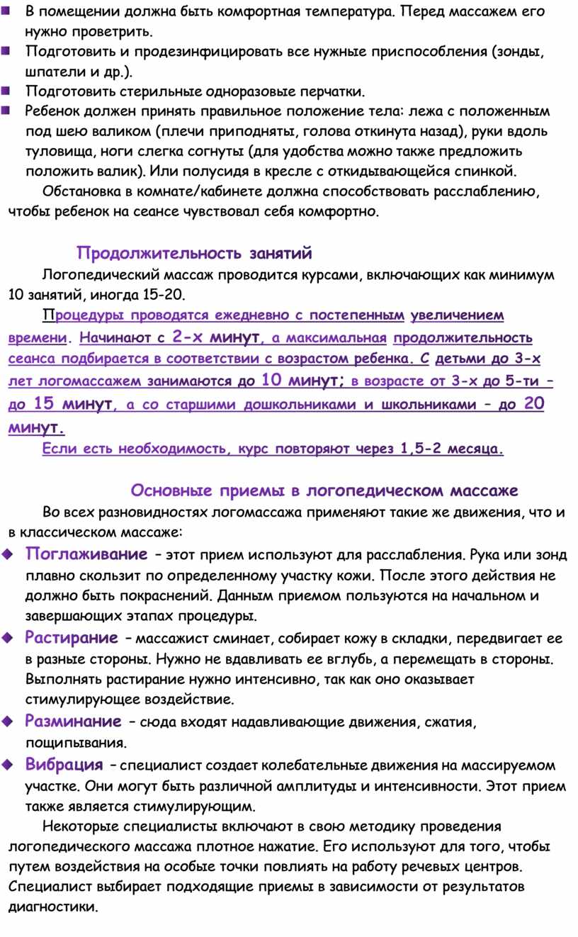 Логопедический массаж проводится курсами, включающих как минимум 10 занятий, иногда 15-20.