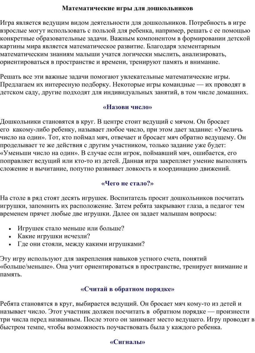Решать все эти важные задачи помогают увлекательные математические игры. Предлагаем их интересную подборку. Некоторые игры командные — их проводят в детском саду, другие подходят для индивидуальных занятий, в том числе домашних.