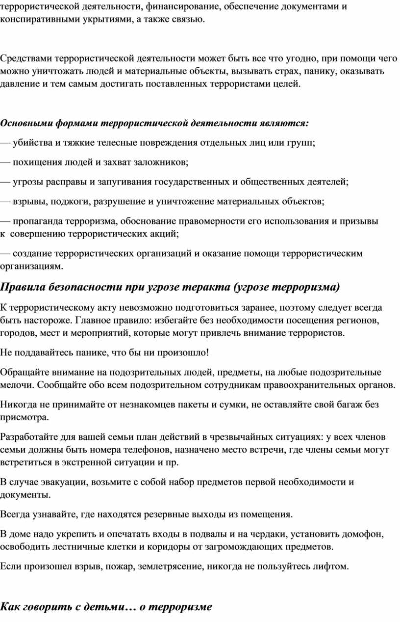 Правила безопасности при угрозе теракта (угрозе терроризма)