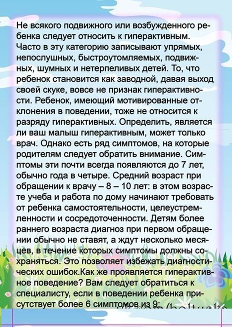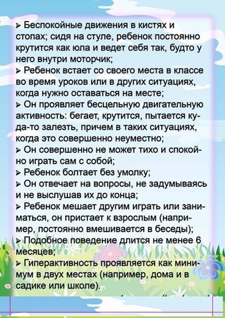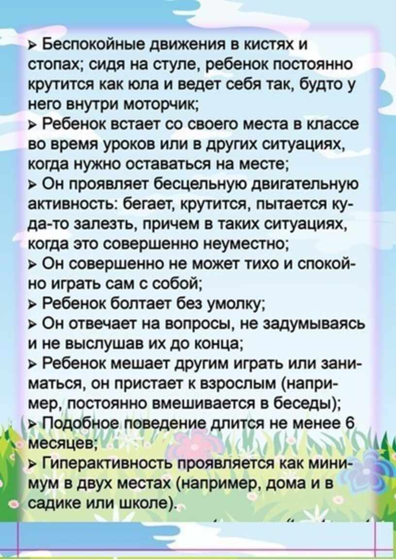 Каковы особенности поведения ребенка с гиперактивностью: