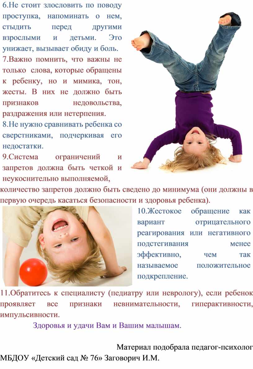 11.Обратитесь к специалисту (педиатру или неврологу), если ребенок проявляет все признаки невнимательности, гиперактивности, импульсивности.