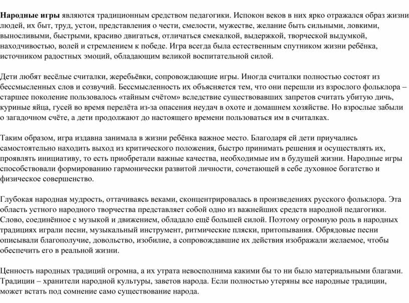 средством педагогики. Испокон веков в них ярко отражался образ жизни людей, их