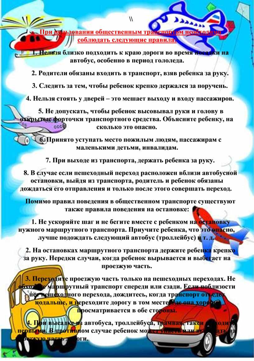 При пользовании общественным транспортом необходимо соблюдать следующие правила: