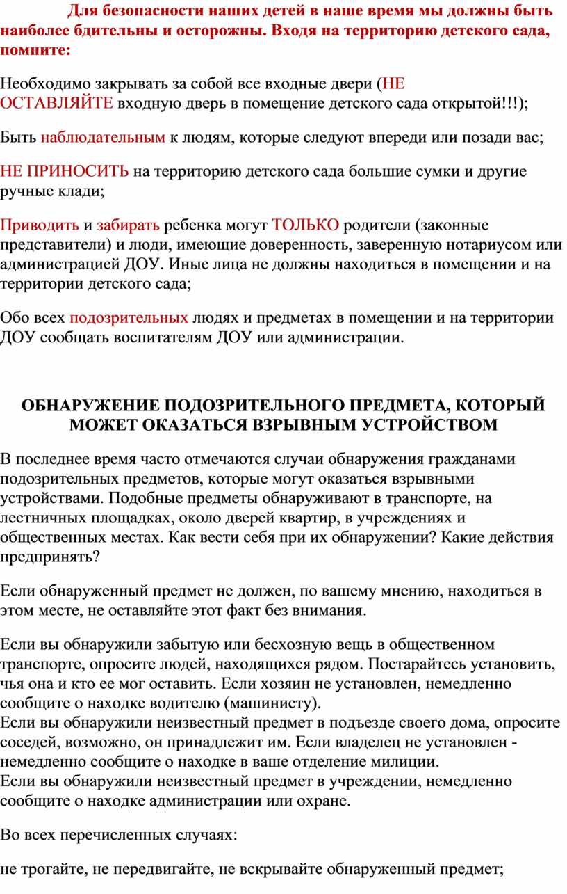 Для безопасности наших детей в наше время мы должны быть наиболее бдительны и осторожны. Входя на территорию детского сада, помните: