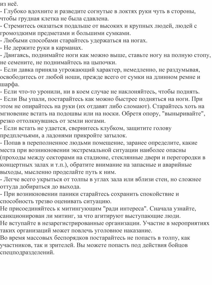 - Если оказались в толпе, позвольте ей нести Вас, но попытайтесь выбраться из