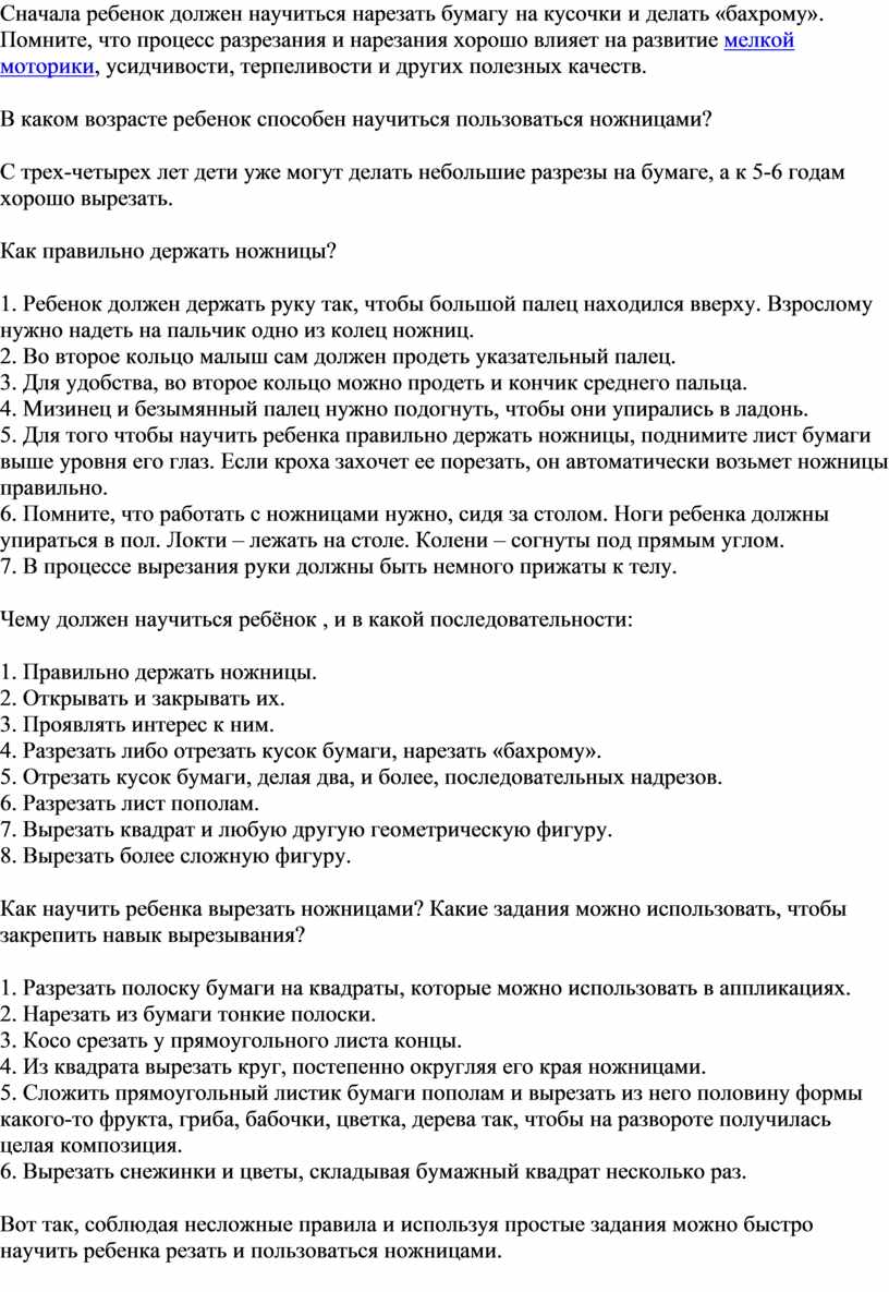 Вот так, соблюдая несложные правила и используя простые задания можно быстро научить ребенка резать и пользоваться ножницами.