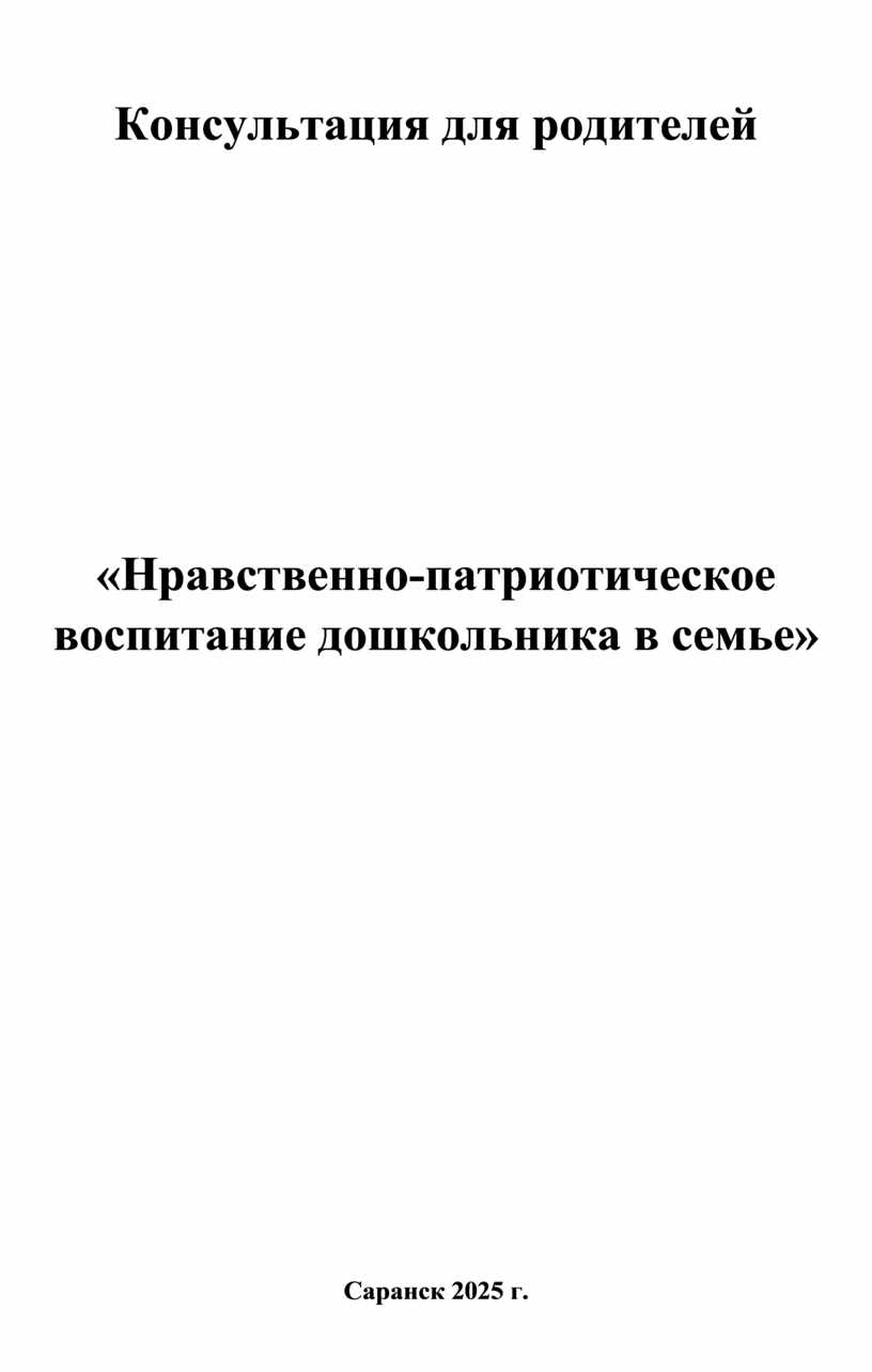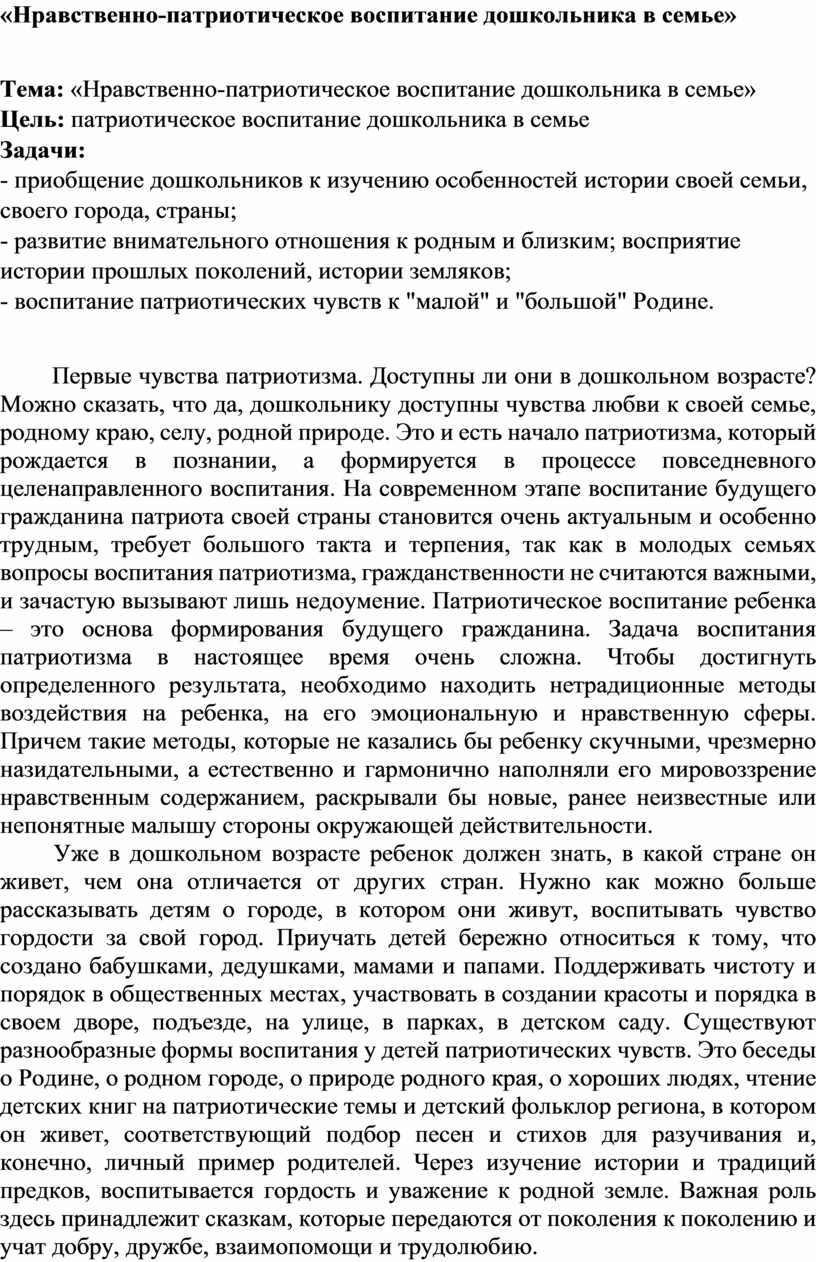 Тема: «Нравственно-патриотическое воспитание дошкольника в семье»