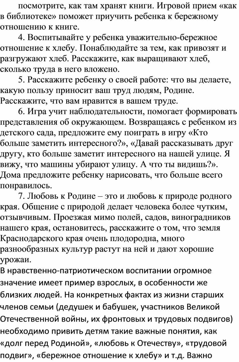 7. Любовь к Родине – это и любовь к природе родного края. Общение с природой делает человека более чутким, отзывчивым. Проезжая мимо полей, садов, виноградников нашего края, остановитесь, расскажите о том, что земля Краснодарского края очень плодородна, много разнообразных культур растут на ней и дают хорошие урожаи.