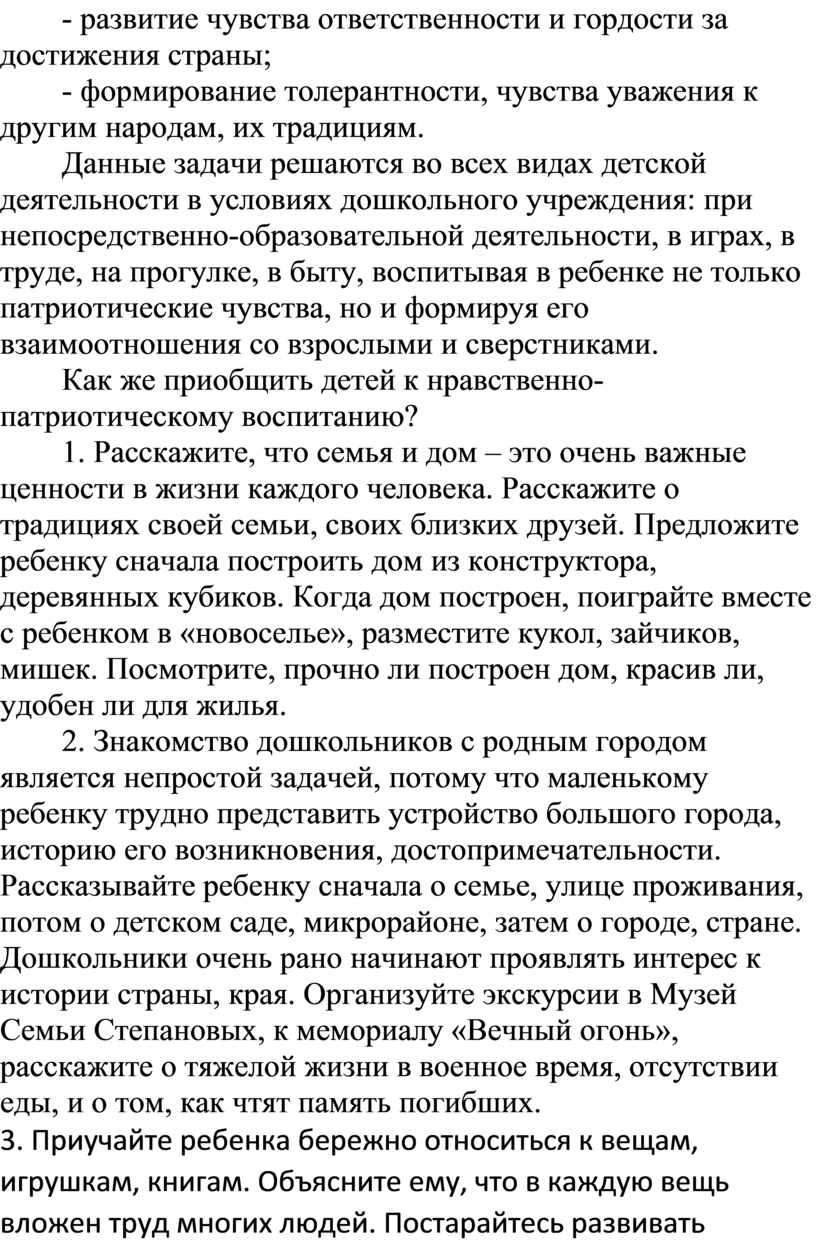 Исходя из этого, нравственно-патриотическое воспитание включает целый комплекс задач: