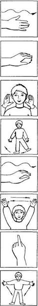 Часть 1. Взрослый показывает ребенку изображение человечка и просит встать так же, как на рисунке, то есть стать «зеркальным отражением».