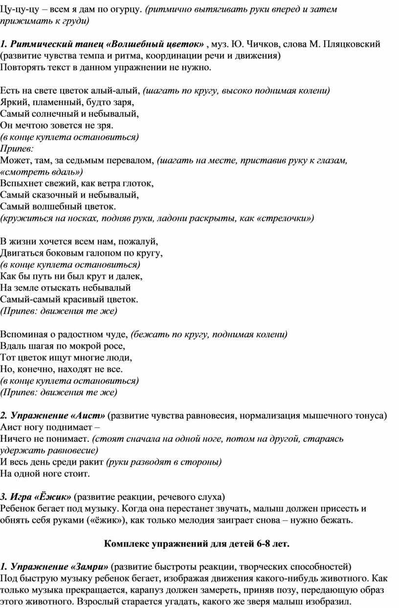 6. Ритмический танец «Волшебный цветок» , муз. Ю. Чичков, слова М. Пляцковский (развитие чувства темпа и ритма, координации речи и движения)