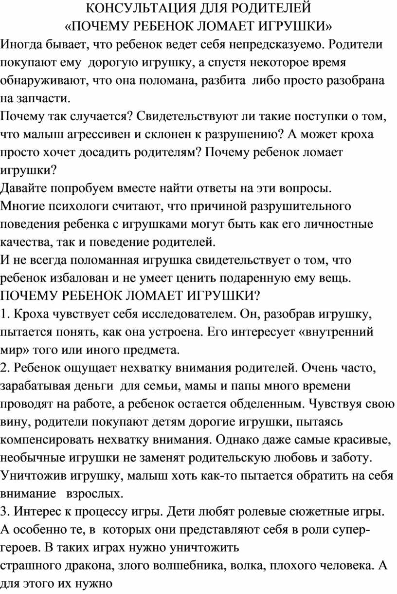 «ПОЧЕМУ РЕБЕНОК ЛОМАЕТ ИГРУШКИ»