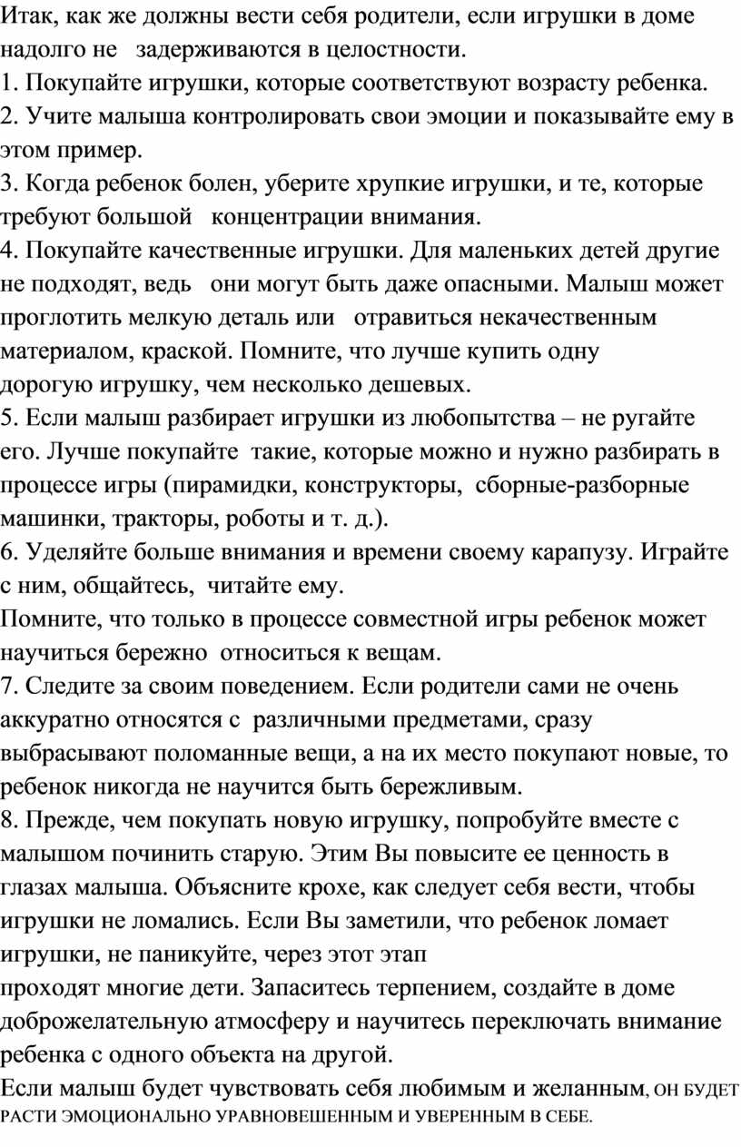 Итак, как же должны вести себя родители, если игрушки в доме надолго не задерживаются в целостности.
