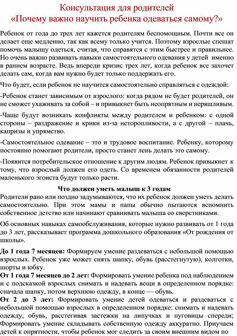 Ребенок от года до трех лет кажется родителям беспомощным. Почти все он делает еще медленно, так как всему только учится. Поэтому взрослые спешат помочь малышу одеться, считая, что справятся с этим быстрее и правильнее. Но очень важно развивать навыки самостоятельного одевания у детей именно в раннем возрасте. Ведь впереди кризис трех лет, когда ребенок все захочет делать сам, когда вам нужно будет только поддержать его.