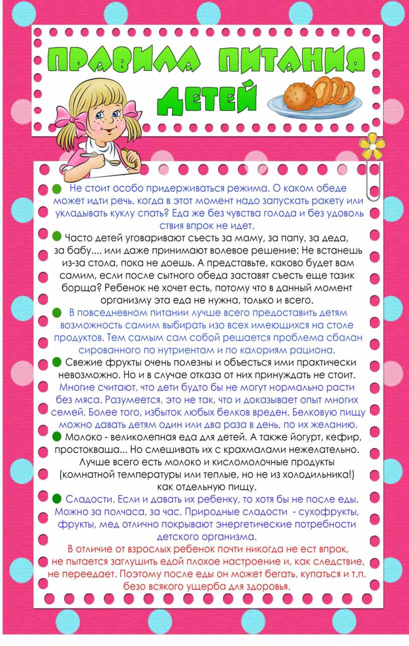Питание ребенка дошкольного возраста должно быть:
