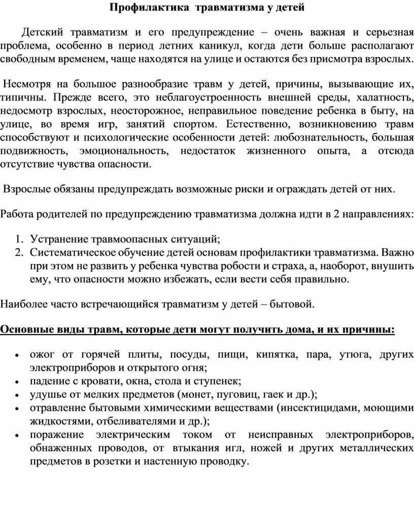 Детский травматизм и его предупреждение – очень важная и серьезная проблема, особенно в период летних каникул, когда дети больше располагают свободным временем, чаще находятся на улице и остаются без присмотра взрослых.