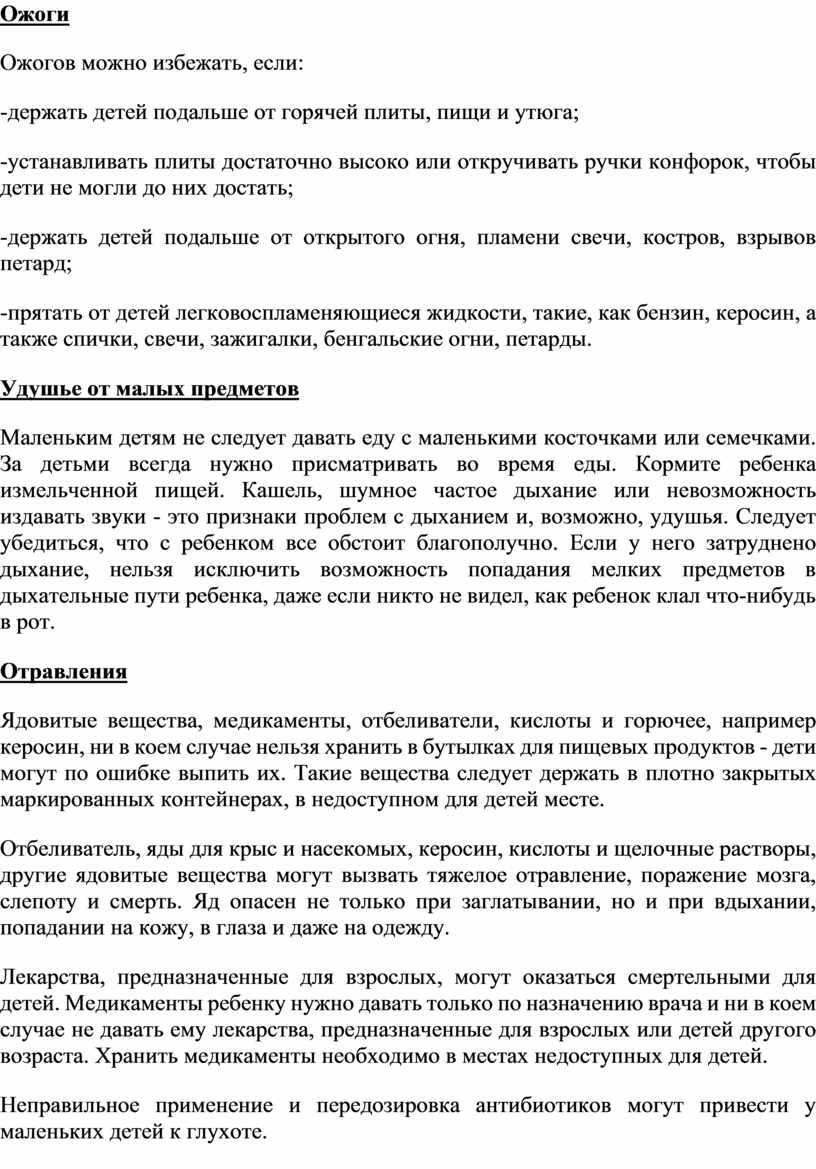 Лекарства, предназначенные для взрослых, могут оказаться смертельными для детей. Медикаменты ребенку нужно давать только по назначению врача и ни в коем случае не давать ему лекарства, предназначенные для взрослых или детей другого возраста. Хранить медикаменты необходимо в местах недоступных для детей.